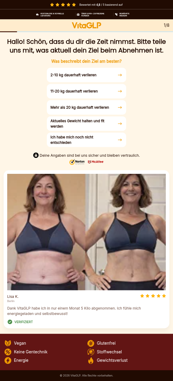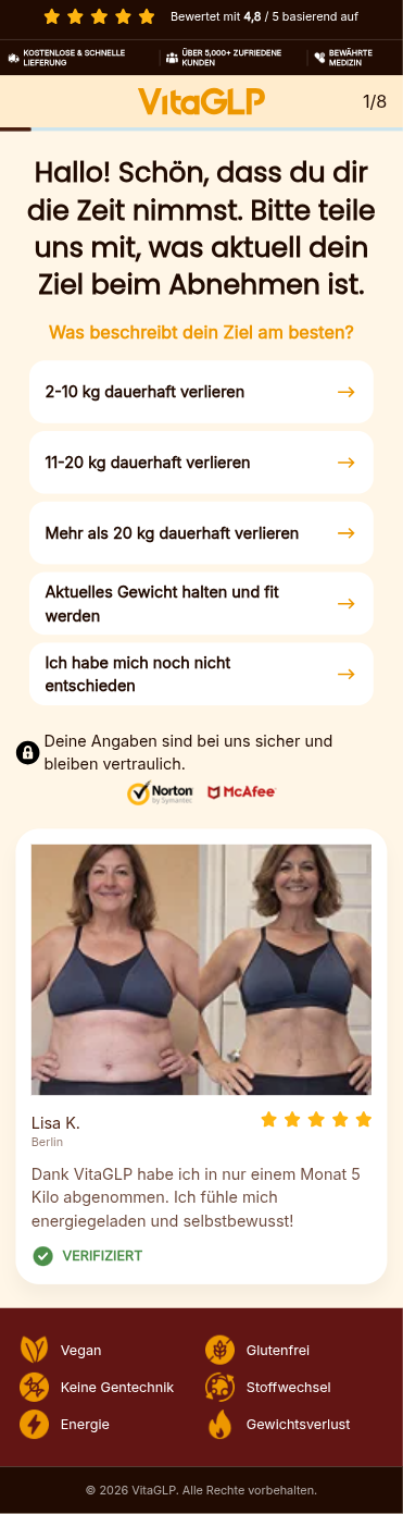 Wenn Sie mit Ihrem VitaGLP Kauf nicht zufrieden sind, können Sie innerhalb von 30 Tagen eine Rückerstattung beantragen. Ihre Zufriedenheit ist unsere Priorität.