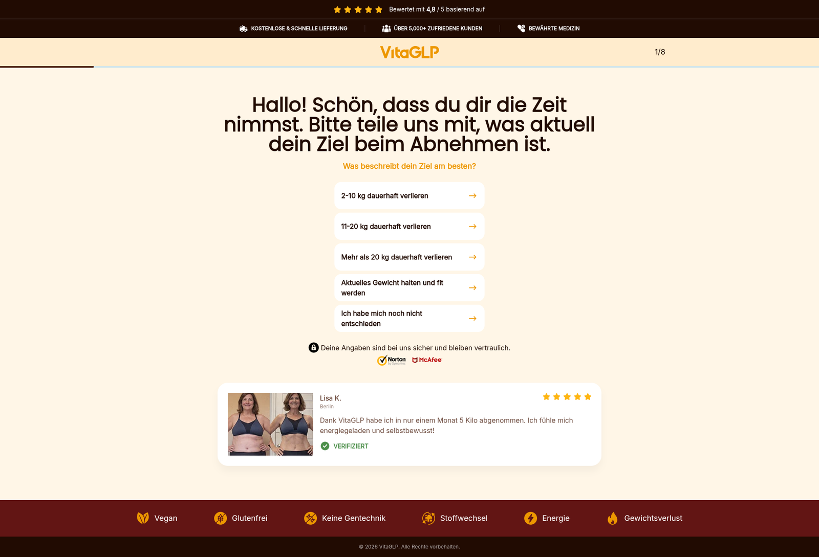 Willkommen auf der offiziellen VitaGLP Webseite. Sichern Sie sich das Originalprodukt zum exklusiven Preis von nur 36,65 €. Dieses zeitlich begrenzte Angebot beinhaltet einen massiven Rabatt von 99,90 € gegenüber dem Normalpreis von 136,55 €. Wir garantieren höchste Qualität und 100% Originalware direkt vom Hersteller.